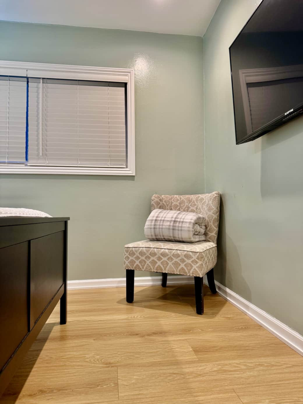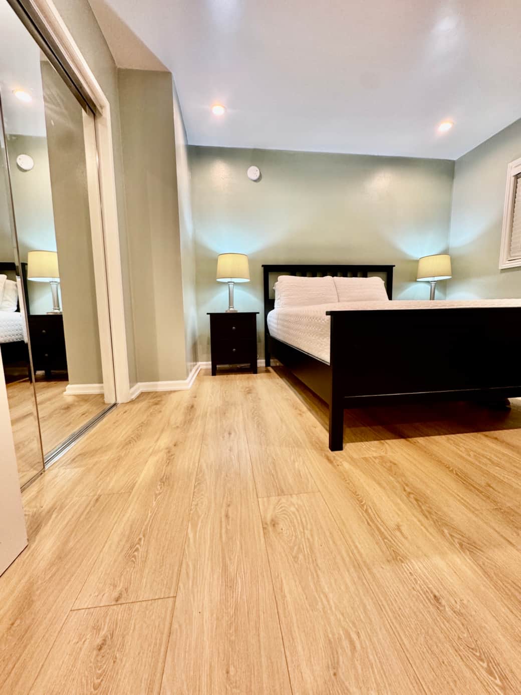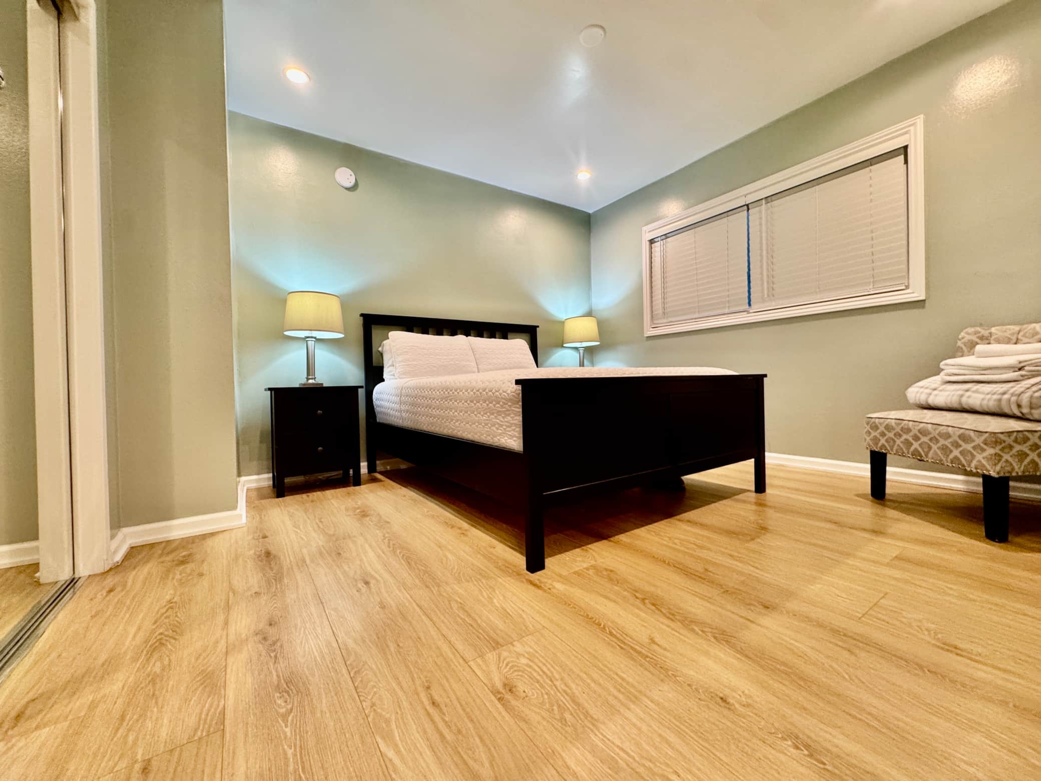 Calm, clean, and effortlessly comfortable, the G-Suite is designed for guests who appreciate simplicity, balance, and a grounded sense of ease. Soft green tones, warm wood flooring, and natural light create a peaceful atmosphere that feels instantly welcoming—perfect for unwinding after a day exploring Los Angeles.